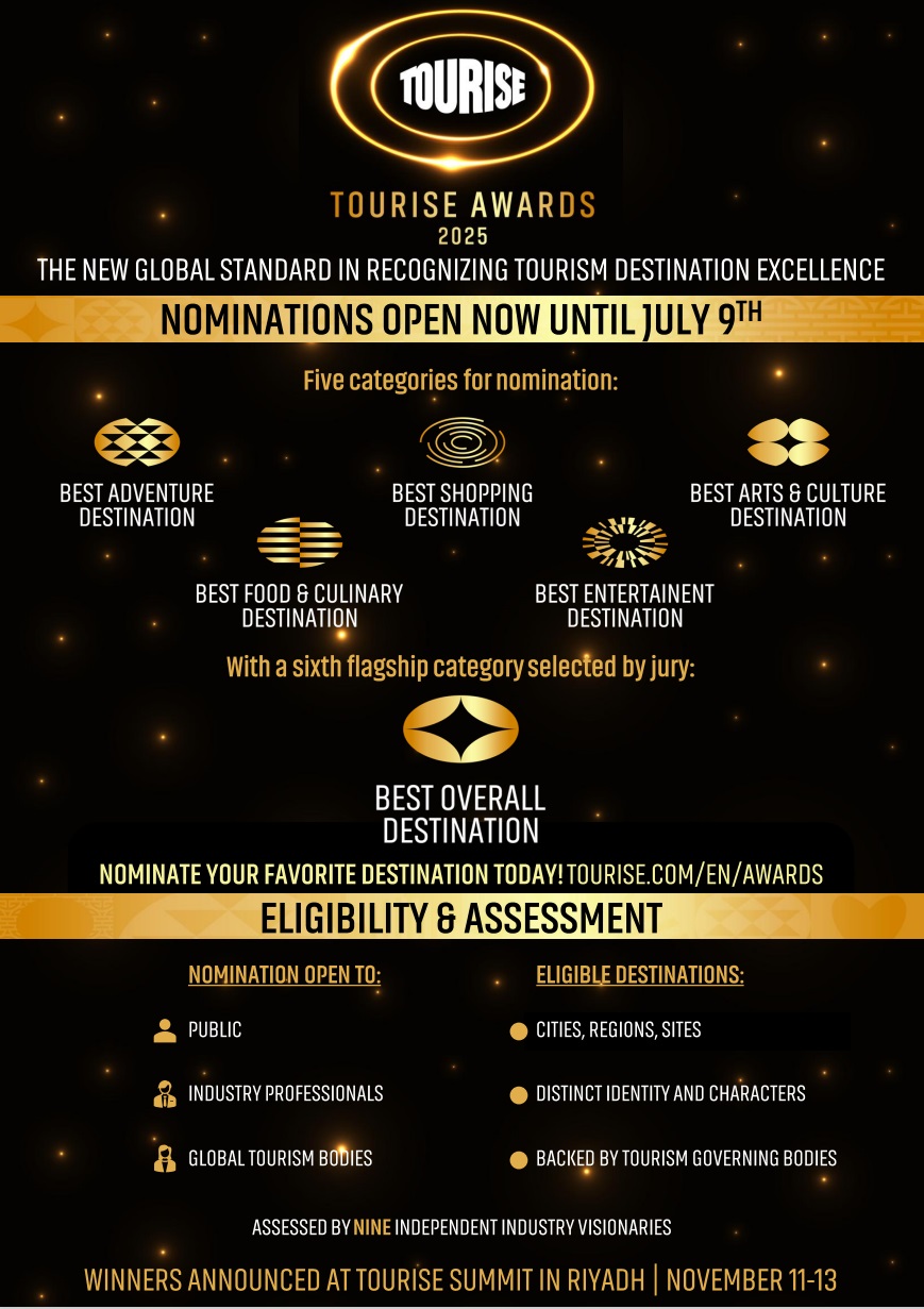 Die TOURISE Awards sind eine Erweiterung der vom Tourismusministerium Saudi-Arabiens unterstützten TOURISE-Plattform, die am 22. Mai 2025 über eine virtuelle Pressekonferenz angekündigt wurde.