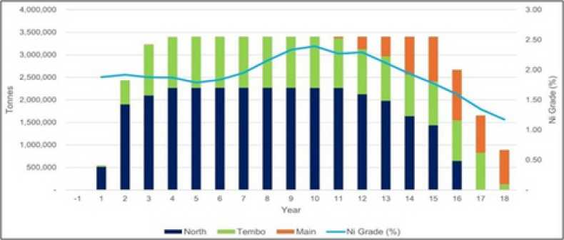Total Production of 902,000 Tonnes of Nickel, 134,000 Tonnes of Copper and 69,000 Tonnes of Cobalt in Intermediate Product over the Life of Mine (100% Basis)