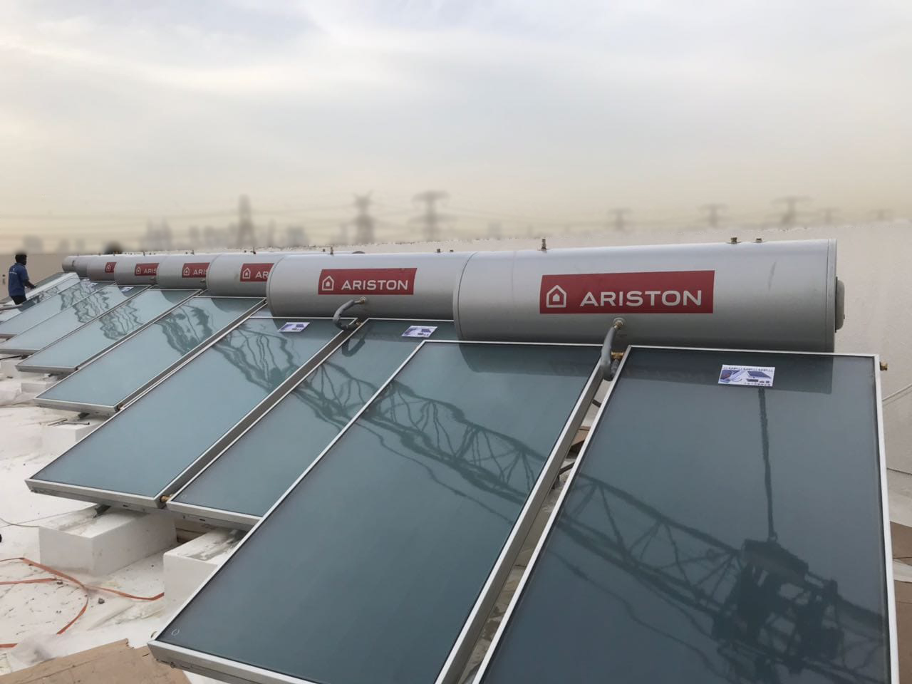 لقد نُفذت أحد مشاريع الطاقة الشمسية لمجموعة أريستون الشرق الأوسط في المملكة العربية السعودية في مكتب وزارة الداخلية في جدة، فكان المطلب الضروري هو تلبية الطلب على الماء الساخن للمبنى الرئيسي المكون من العديد من المكاتب ودورات المياه. فمن حيث الأرقام، كان المطلوب هو إنشاء نظام شمسي قادر على توفير 3257 لترًا يوميًا عند 60 درجة مئوية بمساهمة شمسية بحد أدنى 60 ٪ وإجمالي متطلبات الطاقة السنوية البالغة 59354 كيلوواط ساعة.