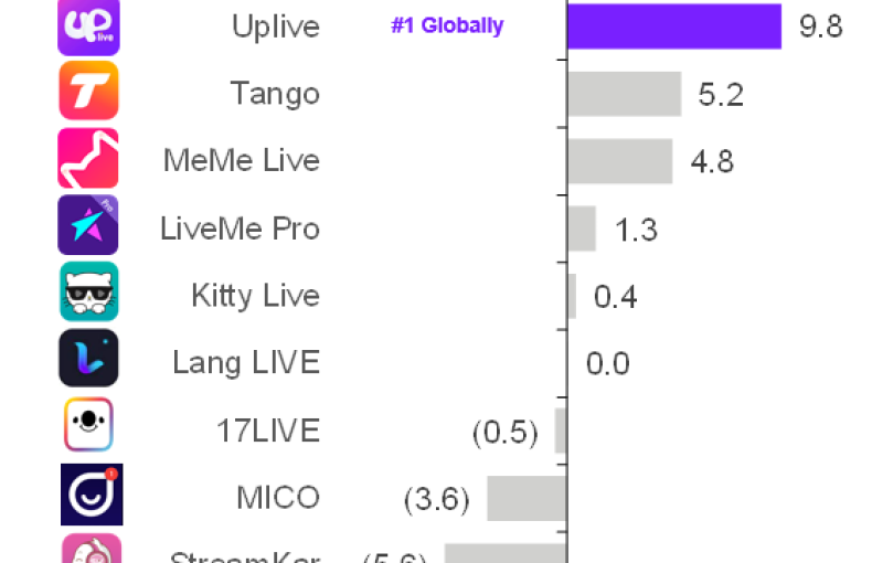 احتلت منصة Uplive الرائدة والتابعة لمجموعة ابتكارات آسيا (AIG) المركز الثالث ضمن تصنيف منصات التواصل الاجتماعي الأكثر نمواً حول العالم، حيث جاء هذا التصنيف من خلال منصات تحليل مستقلة وهي AppAnnie و Sensor Tower.