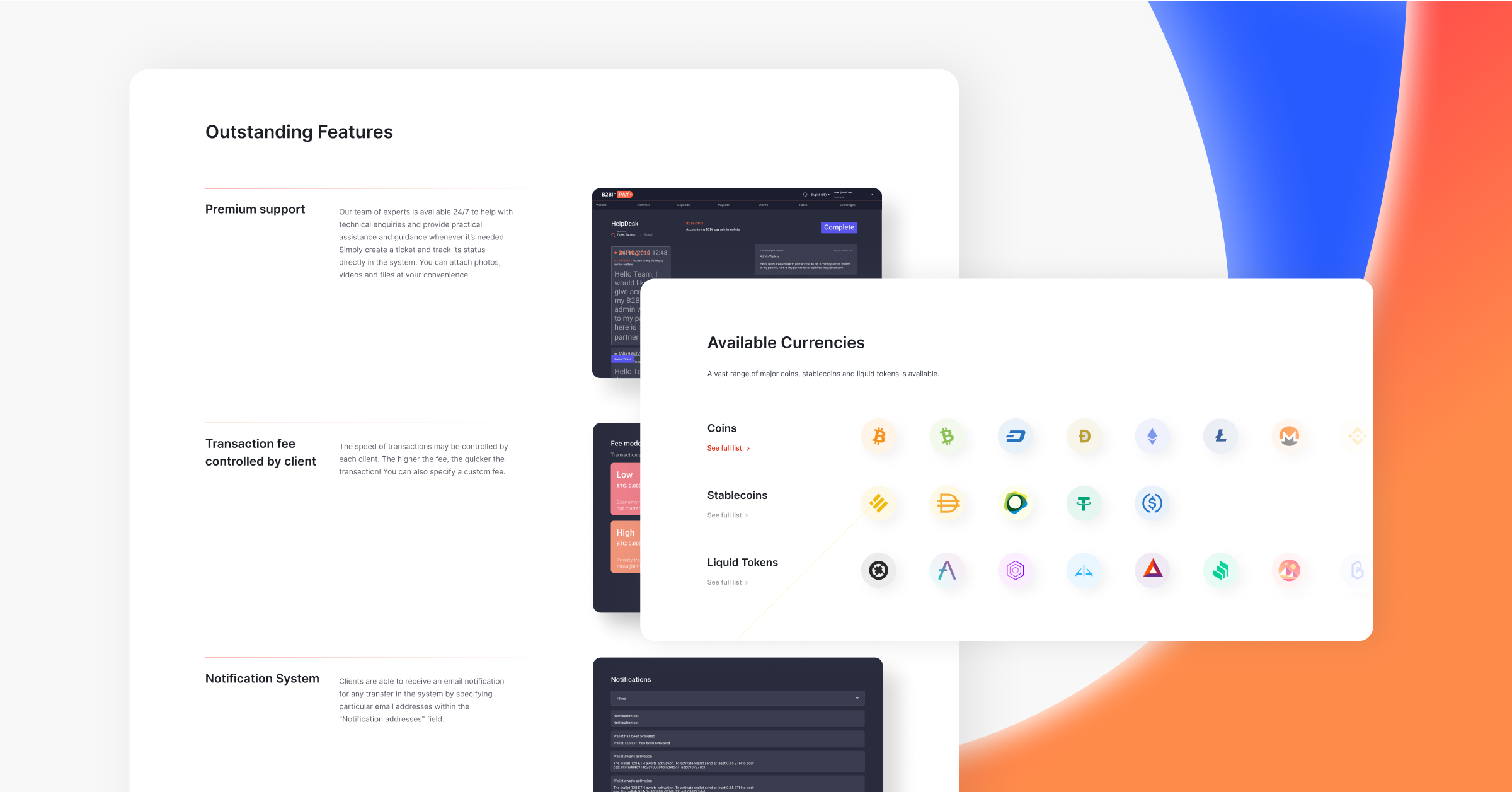 قامت B2BinPay بتوسيع نطاق الأصول المدعومة لنماذج التجار والمؤسسات بشكل ملحوظ من خلال تقديم أكثر من 100 عملة رقمية جديدة ومنها WBTC، وANKR، وGALA، وIMX، وأكثر من ذلك بكثير.