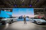 (من اليسار إلى اليمين، Wolfgang Egger (مدير التصميم في شركة BYD)، }Li Yunfei (المدير العام لقسم الوسم التجاري والعلاقات العامة في شركة BYD)، }Wang Chuanfu (مدير شركة BYD ورئيسها)، Michael Shu (المدير الإداري لشركة BYD Europe)، }Brian Yang (المدير العام المساعد في شركة BYD Europe)، }Penny Peng (مدير التسوق والعلاقات العامة في شركة BYD Europe) } (الصورة: Business Wire)