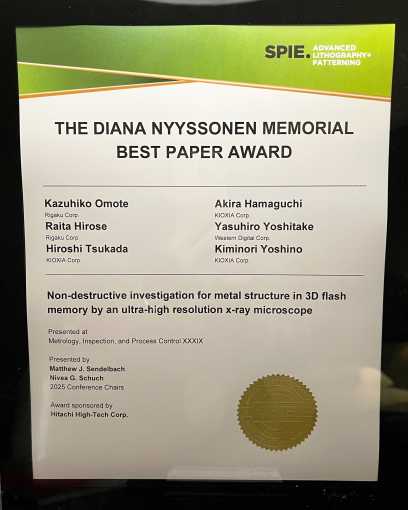 فازت شركة Rigaku بجائزة Diana Nyyssonen Memorial لأفضل ورقة بحثية عن طريقة فحص وقياس العيوب في ذاكرة الفلاش ثلاثية الأبع...