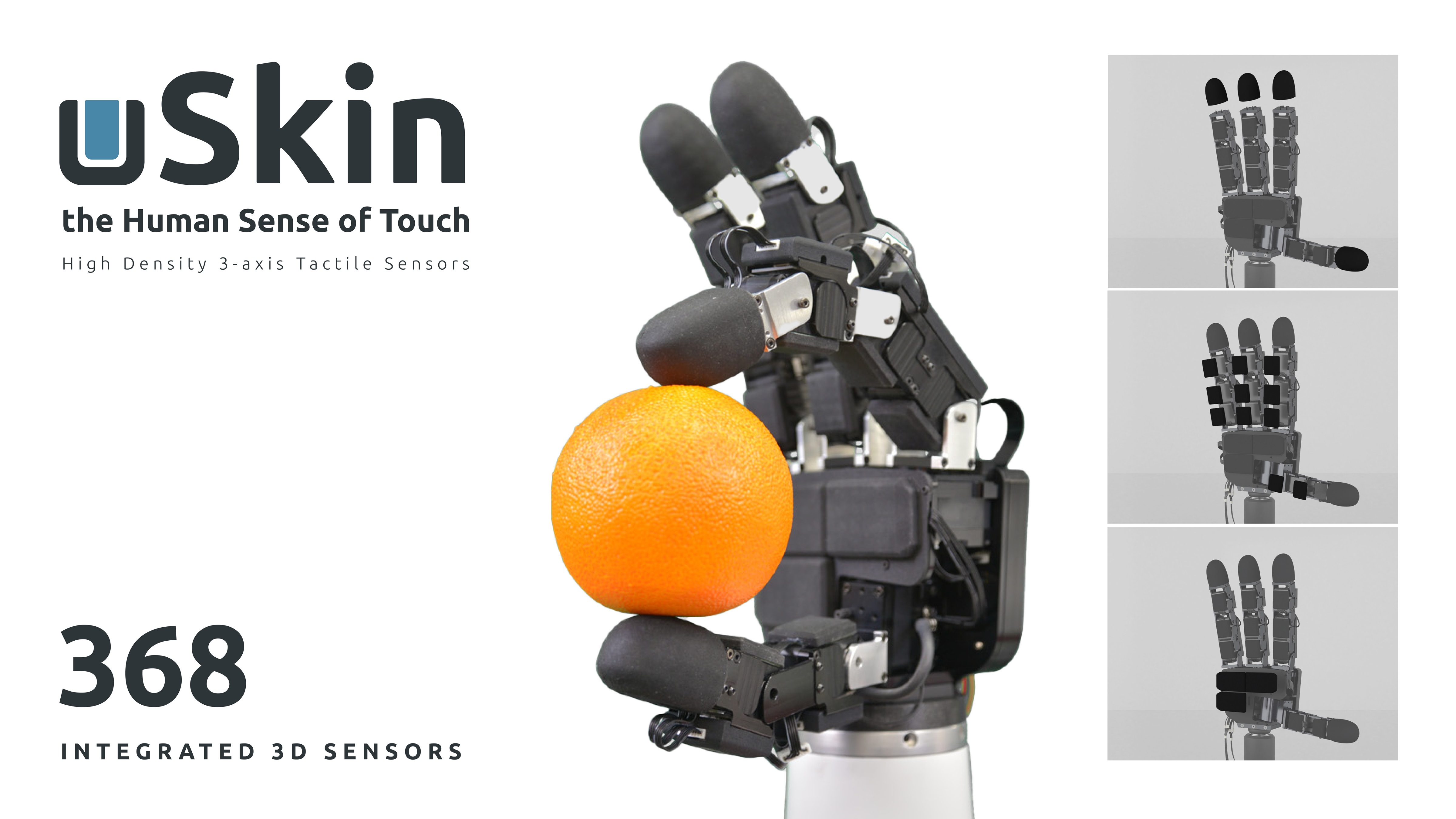 نجحت شركة XELA في تطوير جهاز uSkin، وهو مستشعر لمسي عالي الكثافة ثلاثي المحاور مثبت داخل عبوة ناعمة ومتينة، ويتكامل تكاملاً سلسًا مع الروبوتات الجديدة والحالية. كما يتيح uSkin للروبوتات امتلاك حاسة لمس مشابهة للبشر، مما يحسن قدرتها على التعامل مع الأشياء بدقة. إضافة إلى ذلك، تحتوي كل رقعة استشعار على عدة مستشعرات، وكل مستشعر يقيس القوة الثلاثية المحاور (وليس الضغط فحسب)، ويمكن تخصيص هذه التقنية لتطبيقات معينة.