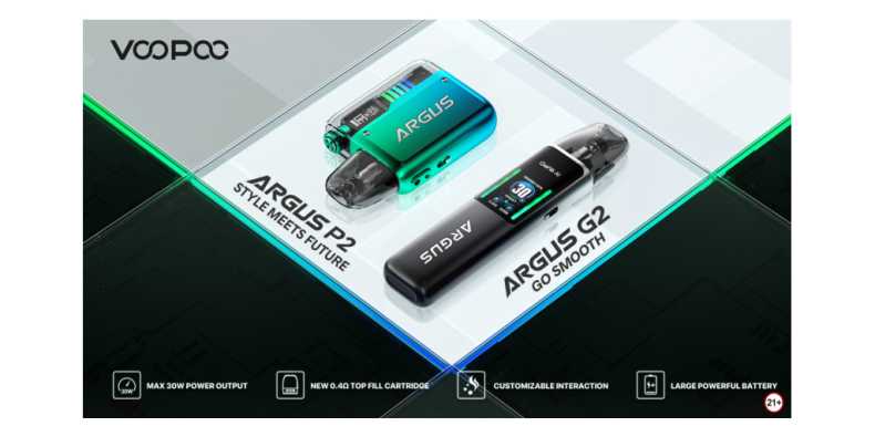 أرجوس بي 2، وأرجوس جي 2 هما الجيل الثاني من إصدارات فوبو "VOOPOO" الرائدة،: أرجوس بي 1 وأرجوس جي؛ وبالمقارنة مع المنتجات السابقة، يتميز المنتجات الجديدان ببطاريات أفضل وشاشات أكبر، ويتمثل تحديث الخرطوشة الجديد في زيادة السعة من 2 ملليلتر إلى 3 ملليلتر، ونقص مقاومة الملفات إلى 0.4 أوم، وتغيير التعبئة الجانبية إلى تعبئة علوية أكثر ملاءمة، ويُقدم هذا التحديث من أجل تحسين جودة المنتجين دون زيادة سعرهما؛ وليس هذا فحسب، بل إنهما يتميزان بأداء "تحديث 3X" المميز.