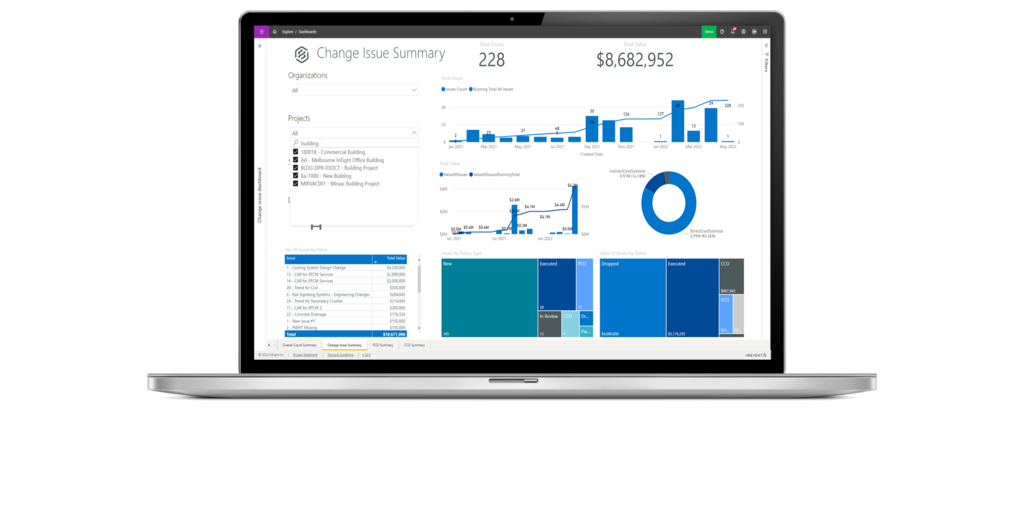 تسمح أحدث تحديثات البرمجيّات للمستخدمين بربط بيانات المشاريع، من إدارة التغييرات إلى التنبؤات المالية، وتمكين الإشراف المباشر على التكاليف والمخاطر باستخدام لوحات المعلومات الرقمية، وإرساء الأسس للمشاريع "التنبؤية" القائمة على الذكاء الاصطناعي.
