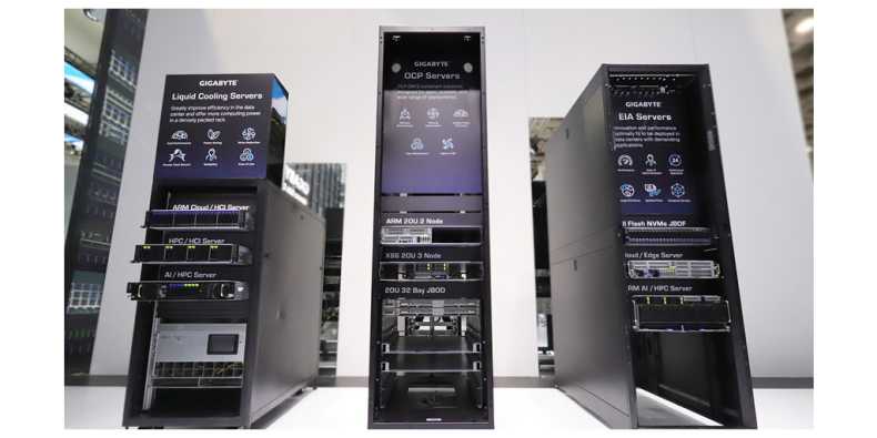 يعتمد تطوير التكنولوجيا والخدمات الرقمية بشكل كبير على مراكز البيانات المتطورة. تعرض GIGABYTE مجموعة كبيرة من الخوادم واللوحات الأم المناسبة للحوسبة السحابية وتخزين البيانات وحوسبة الحافة, بالإضافة إلى الخوادم المعروضة في الأرفف المعيارية EIA وOCP (Open Compute Project تدعم أحدث منتجات المؤسسات من GIGABYTE أحدث الشرائح من AMD وAmpere وIntel وNVIDIA، وهو ما يسمح لمراكز البيانات بالاستفادة من الأداء المحسن والمرونة وقابلية التوسع والكفاءة.