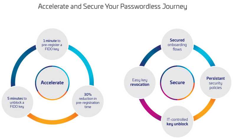 Thanks to unique capabilities, this new solution, allows IT teams to quickly preregister keys and manage them easily and securely from enrollment to revocation. By relieving end users from these processes, the OneWelcome FIDO Key Lifecycle Management solution improves end-user productivity, accelerates FIDO authentication deployment at scale and secures the entire FIDO key lifecycle.