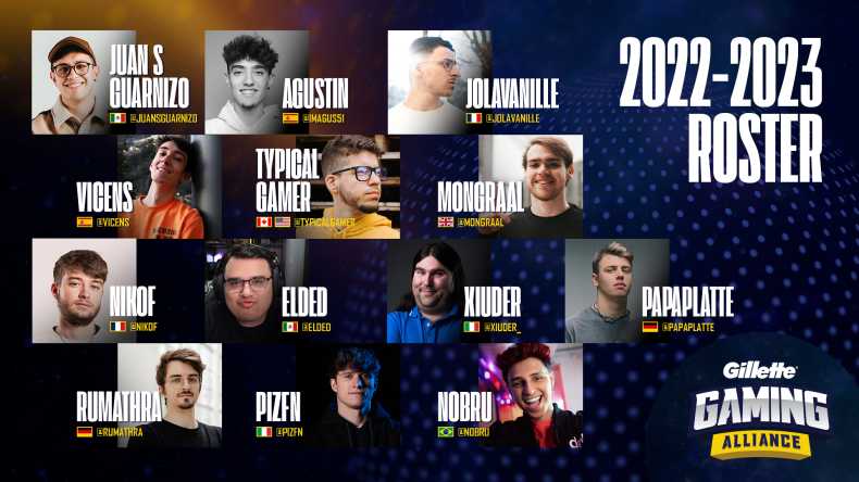 Comprised of both familiar faces and new members, the Gillette Gaming Alliance now includes superstar streamers: TypicalGamer (North America), Mongraal (UK), Jolavanille (France), Nikof (France), Papaplatte (Germany), Rumathra (Germany), Pizfn (Italy), Xiuder (Italy), Vicens (Spain), Agustin (Spain), Nobru (Brazil), Elded (Mexico) and Juansguarnizo (Mexico).