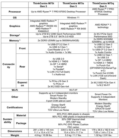 Lenovo ThinkCentre M75t Gen 5 will not be available in North America and will be available in select global markets.