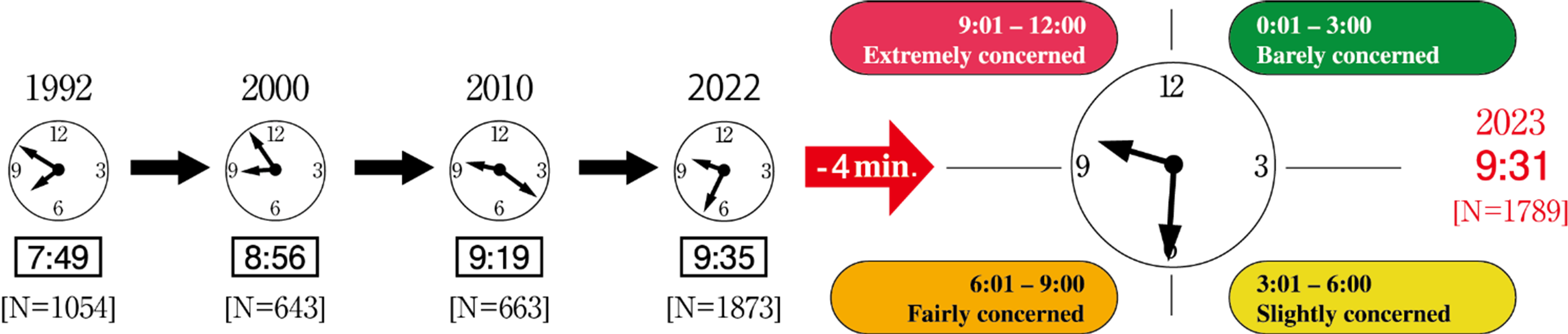 - The time on the Environmental Doomsday Clock has turned back for three consecutive years since 2021, striking 9:31 in 2023.