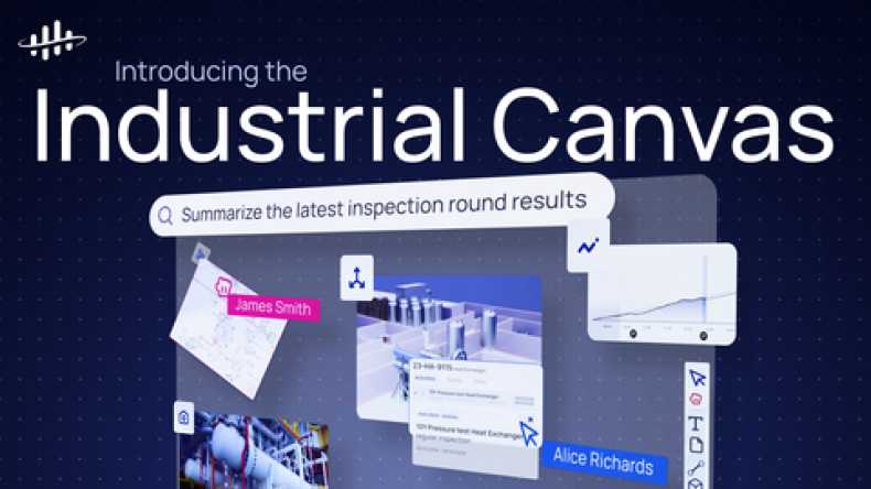Industrial Canvas is a collaborative environment where users can view all data types (documents, engineering diagrams, sensor data, images, 3D models, and more), choose to share workspaces, tag users, and share insights as comments. Industrial Canvas is unique in the way it leverages contextualized data and Generative AI.