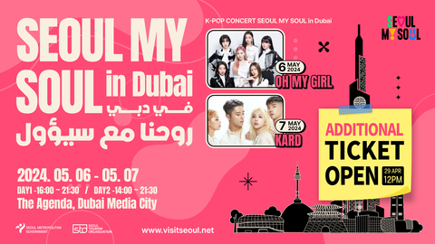(BUSINESS WIRE) -- The Seoul Metropolitan Government and the Seoul Tourism Organization are hosting a tourism promotion event, ‘Seoul My Soul in Dubai’, on May 6th and 7th at Dubai’s The Agenda to showcase the charms of Seoul. The event aims to highlight the vibrant Seoul lifestyle and its soulful essence. The organizers have prepared a diverse program featuring a K-pop concert and fan appreciation events with popular K-pop artists OH MY GIRL and KARD, along with K-pop cover dance performances, a brand showcase of Seoul, lucky draw event, and much more.