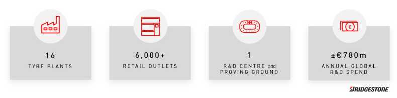 Bridgestone offers a diverse portfolio of premium tyres, tyre technologies and advanced mobility solutions. The company’s vision is to provide social and customer value as a sustainable solutions company. The Bridgestone E8 Commitment is a broad, global corporate commitment that clearly defines the value the company is promising to deliver to society, our customers and future generations in eight focus areas; Energy, Ecology, Efficiency, Extension, Economy, Emotion, Ease and Empowerment. These provide a compass to guide strategic priorities, decision making and actions throughout every area of the business.
