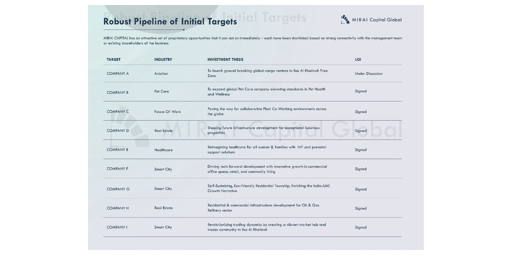MIRAI Capital Global, via RFO, has built a strong pipeline of strategic opportunities that will ultimately build a bridge for the India–UAE–US corridor in 2024-25.