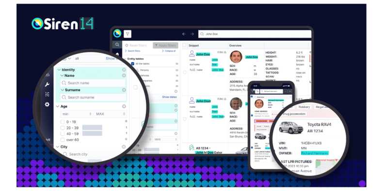 (BUSINESS WIRE)--Siren, the company that provides an all-in-one investigation platform to Police and Sheriff's Departments, Intelligence and Law Enforcement Agencies, Fusion Centers and High Intensity Drug Trafficking Areas programs (HIDTAs) has launched a new AI-Powered search with mobile access as part of its latest release and its Siren for Law Enforcement product bundle.