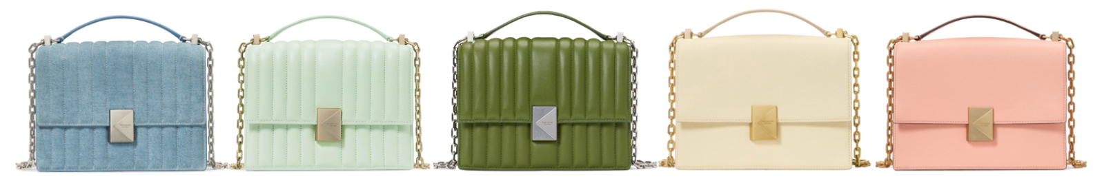 The Deco handbag steps boldly into the spotlight, reimagined for the season in standout Spring/Summer colorways—Blue Multi Denim, Jungle Vine, Pistachio, Sweet Cream and Apricot Cream. A modern expression of kate spade’s design DNA, Deco fuses clean lines, minimalist form, and effortless, everyday luxury. It’s made for the one who carries more than just her essentials—she carries her world, and often, everyone else’s too.
