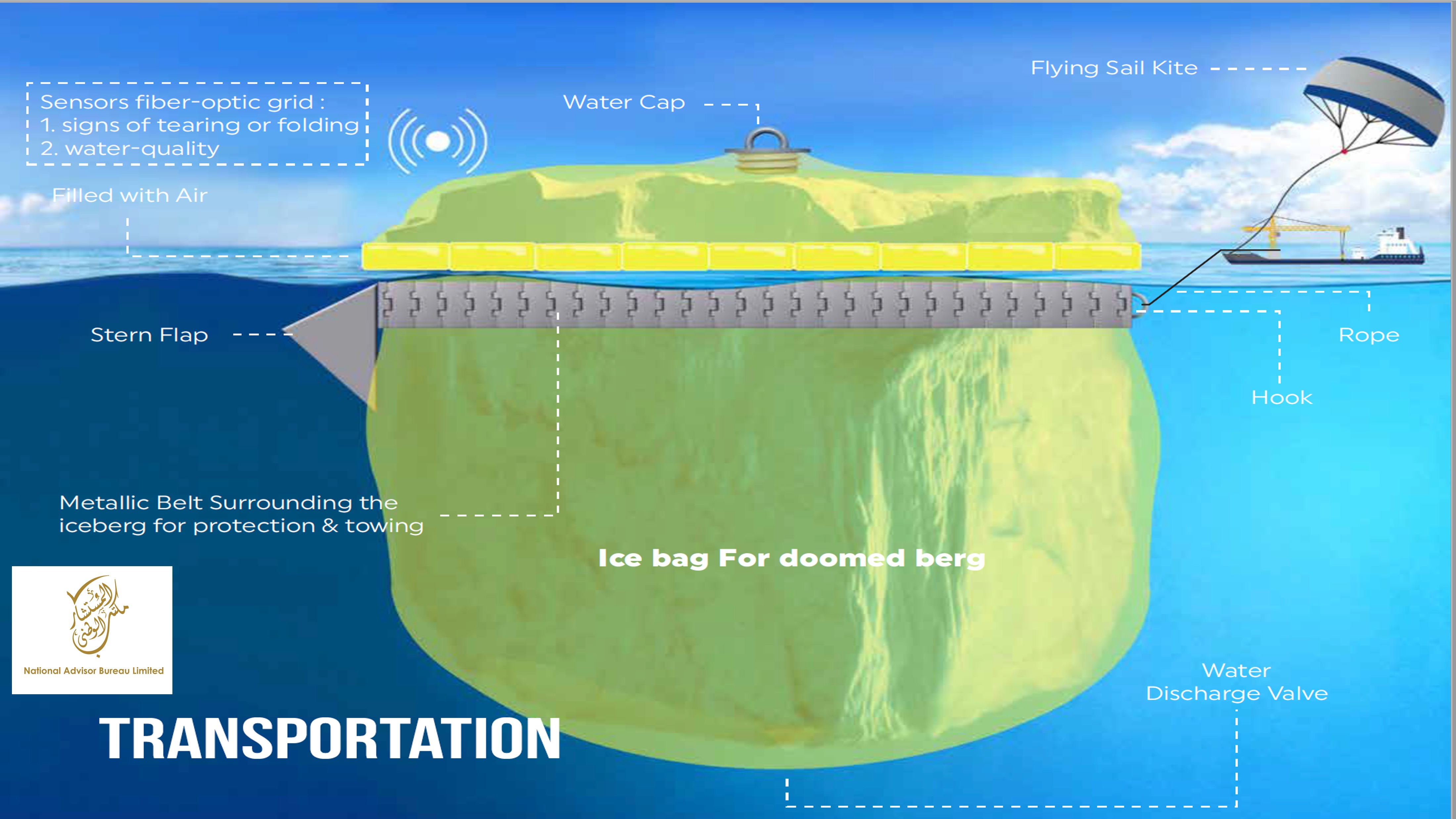 The invention, dubbed “One of the most Significant inventions of the Century”, will use an advanced technology to tow the icebergs to the coasts of the UAE. The technology includes flexible, heat-insulated, and cost-effective reservoirs, leveraging renewable energy to prevent the ice from melting throughout the towing process.