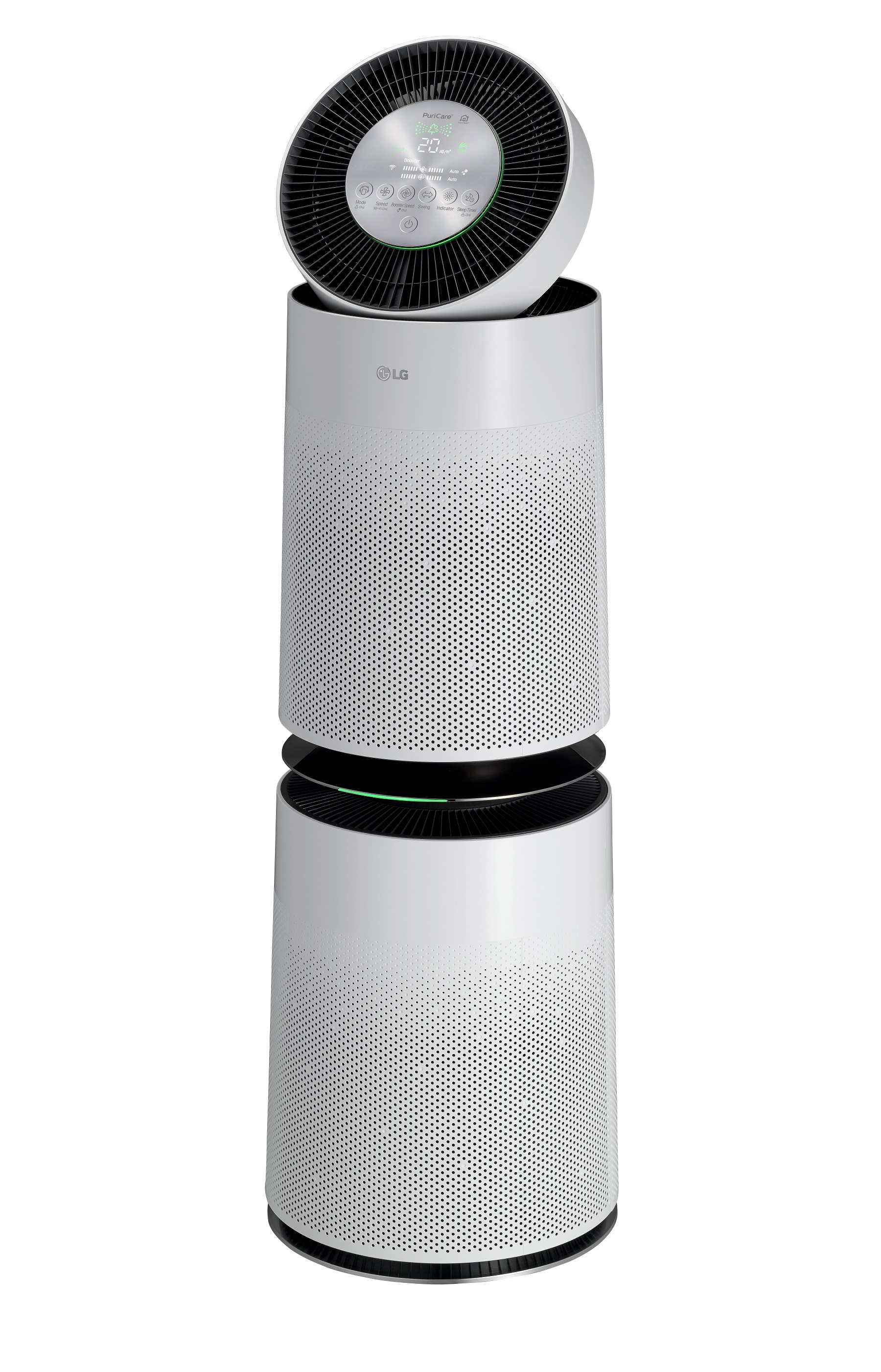 LG’s PuriCare Clean Booster delivers filtered clean air to 7.5m distance. It rises and rotates to the right and left, to deliver clean air to the far end of the room. The Clean Booster has an efficient pollution removal performance. The air gets distributed through the rotating clean booster which powerfully purifies the entire room. This special function is 74% faster in dust removal.