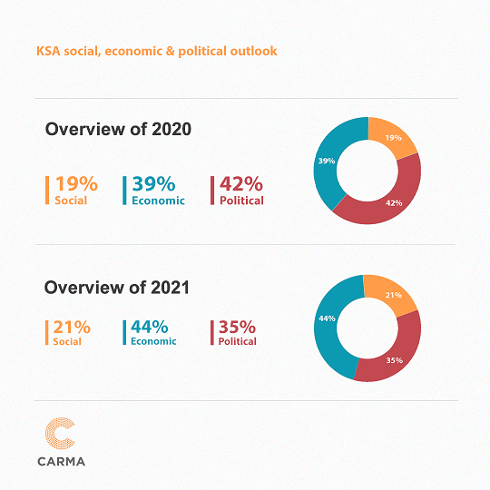 CARMA’s research shows conversation is increasing around social changes taking place in KSA (23%) and key topics covered are as follows: