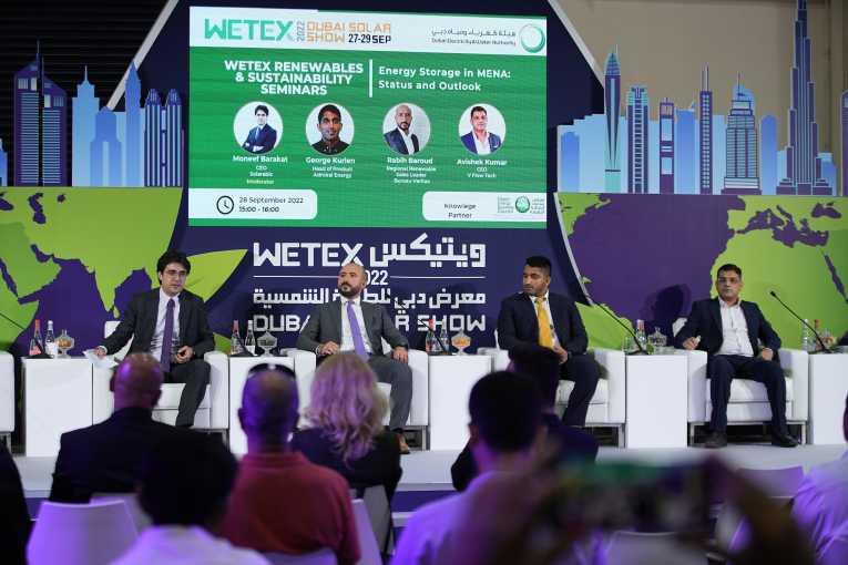 Durant WETEX et DSS, DEWA a organisé 110 séminaires et tables rondes en présence d'éminents experts et spécialistes du monde entier. Les sujets comprenaient le développement durable; l'énergie propre et renouvelable; l'hydrogène vert; le dessalement de l'eau à l'aide d'énergie propre; la décarbonisation; l'économie circulaire; la production et le stockage d'énergie renouvelable; les technologies de transformation des déchets en énergie; l'intelligence artificielle; les technologies émergentes dans les services publics; les compteurs et réseaux intelligents, entre autres.