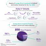 Согласно данным Dubai FDI Monitor, опубликованным Департаментом экономики и туризма Дубая (DET), в 2023 году Дубай привлек 898 проектов в секторе культурных и креативных индустрий, что почти вдвое больше, чем в предыдущем году. Это привело к притоку иностранных прямых инвестиций на сумму 11,8 миллиарда дирхамов, что на 60% больше, чем в предыдущий период. По оценкам, в 2023 году было создано 21 563 новых рабочих места, что на 74% больше, чем в 2022 году.
